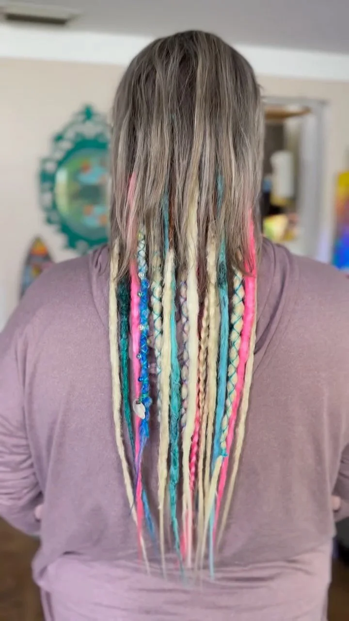 We offer hand-made loc extensions, available in temporary or permanent options. Permanent loc extensions are always made with human hair, while synthetic hair is typically used for temporary extensions. We offer the option to either install or ship out - it's up to you.